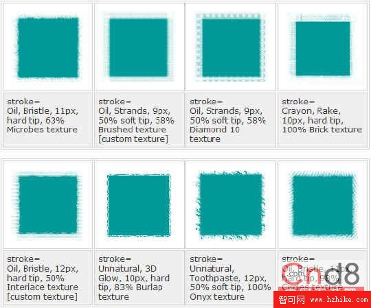通過改變筆觸及其類型,筆尖的柔軟度,筆尖的大小和添加的材質總量,你可以作出令人驚異的各種邊框效果。你可能還希望繼續探索如何運用筆觸。但你要記住的重要的事情是,你要添加筆觸於其上的圖片塊和筆觸本身應該與你要放置圖形的頁面背景是同一顏色。