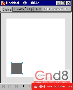 現在圖中的矩形上的右下角就會加上一個小小的箭頭,表示這是一個動畫符號(animation symbol),一條線表示這個符號的移動路徑,線上的每一個點表示一幀。
