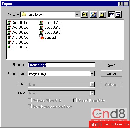 將一副大的圖像使用切割工具分成一個個小的切片以後,你就要把這些切片輸出。
