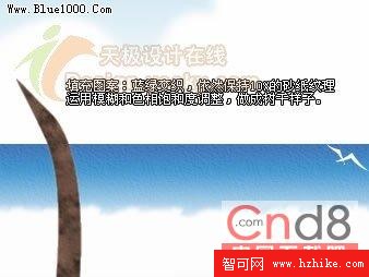 樹干填充圖案:藍綠交織,依然保持10%的砂紙紋理,運用模糊和色相飽和度調整,做成樹干樣子。還有其他的表現手法,朋友們可以去自己試驗,這裡就不介紹了。