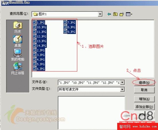 2、 出現“批次”對話框,選取所要調整的圖片,點擊“繼續”。(見下圖6.jpg)