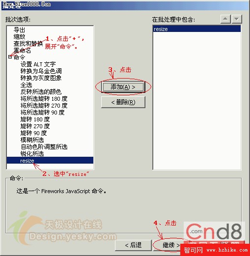 如果要同時處理幾十幅或幾百幅圖片,可以結合firework中的批處理命令和“resize”命令使用。