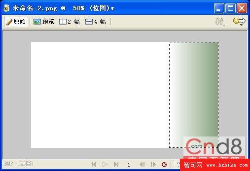 6.使用【漸變】工具,在畫布右側的選區中單擊鼠標左鍵,漸變色即可填充到當前選區中。如圖1.6所示。填充完畢,按快捷鍵【Ctrl+D】推出位圖編輯模式。