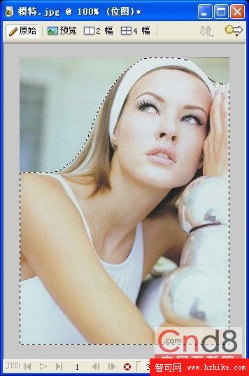 11. 在Fireworks 8的新窗口中打開事先准備好的圖像素材“模特.jpg”,選擇繪圖工具欄中的【多邊形套索】工具,在【屬性】面板中進行相應的設置,如圖1.11所示。