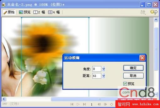 21.首先把向日葵復制一個,選中復制的向日葵圖像,在【屬性】面板的【濾鏡】菜單中選擇【模糊】@@【運動模糊】命令。