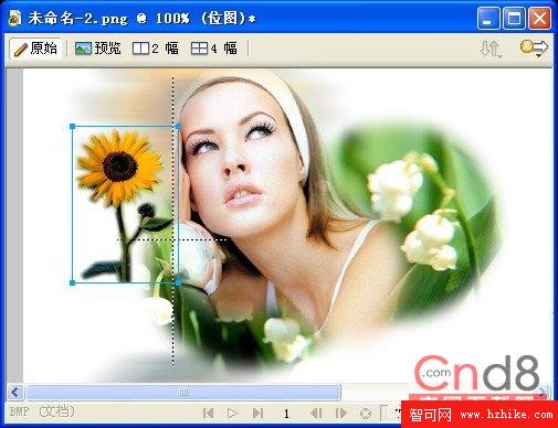 24.把另外一張向日葵的圖像縮小到適當的尺寸,並且移動到十字坐標上,如圖1.22所示。