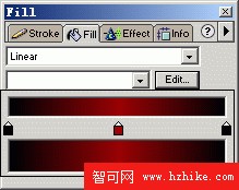 2、 設定填充為線性漸變填充,點擊填充面板的Edit按鈕編輯填充,如下圖所示: