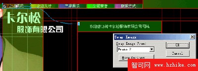 1、 單擊“企業概況”按鈕處的切片,此切片中心將出現一個圓形標志,用鼠標將其拖動到上一步創建的切片左上角,這將設置一個翻轉效果,在彈出的對話框中設定鼠標滑過時交換為第二幀的內容,如下圖所示: