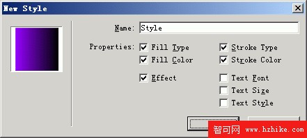 8、 打開Style面板,選中剛才創建的矩形,在Style面板的彈出菜單中選擇New Style創建一個新的樣式,並命名為MyStyle,如下圖: