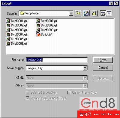 將一副大的圖象使用切割工具分成一個個小的切片以後,你就要把這些切片輸出。