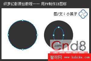4、使用鋼筆工具,繪制如圖所示的圖形,用其對原圖形進行打孔切割,得到字母“e”的基本形態。