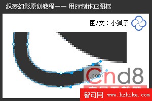 8、放大畫布顯示比例,使用部分選取工具調整橢圓環切口處的切線,使其更加平滑。