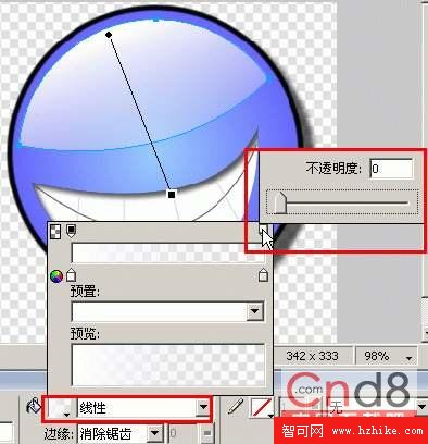 8.接下來這部分比較重要,這部分效果體現了這個娃娃整體的質感與亮度比,使娃娃顯的有立體感。新建一層,選擇“鋼筆”工具,然後在“屬性面板”中設置填充類別為“線性”填充,單擊填充顏色框,然後單擊左邊的色標,顏色代碼為#FFFFFF,(如右邊的色標顏色代碼為#EFEFEF,單擊右邊色標上方的色塊,將不透明度調整為0,描邊種類為無,畫出下圖所示的形狀,然後調整漸變色的位置。