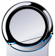 這樣,金屬外圍的反光效果就算畫好了!我們接著來畫內側的的反光效果。先用“鋼筆”畫出如下圖般的外形,然後設置羽化值為1,色彩填充如下圖。