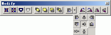 3、 選中這五個按鈕實例,打開Modify面板,選擇水平居中對齊,如下圖所示: