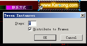 8、 選擇這兩個實例,在右鍵彈出菜單中執行Symbols>Tween Instances創建變形動畫,設定插入幀數為6幀,並勾選Distribute to Frames分布到幀,如下圖所示: