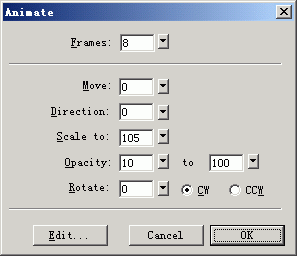 4、 在彈出的設置窗口中設置插入幀數為8,並進行如下設置: