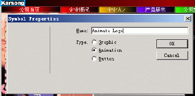 3、 選擇此文字對象,按F8快捷鍵將其轉換為一個動畫符號,將其命名為“Animate Logo”,符號類型為“Animation”,如下圖所示: