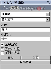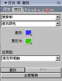 使用“查找”面板可方便快捷地查找或替換文件中的文字、字體、顏色等內容。這對於較大的網頁制作或圖像處理都將帶來極大的方便。
