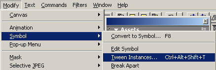 將畫布中的graphic選中,ctrl+shift+d,克隆出一個新的symbol,將克隆出來的symbol透明度調成0%。然後同時選中這兩個symbol,菜單欄裡的modify>symbol>tween vinstances(也可以直接按快捷鍵)。