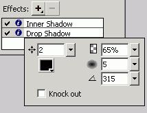 步驟三、增加下拉陰影,在屬性面板的特效一域,點加號,選擇下拉陰影。參數和效果顯示如下