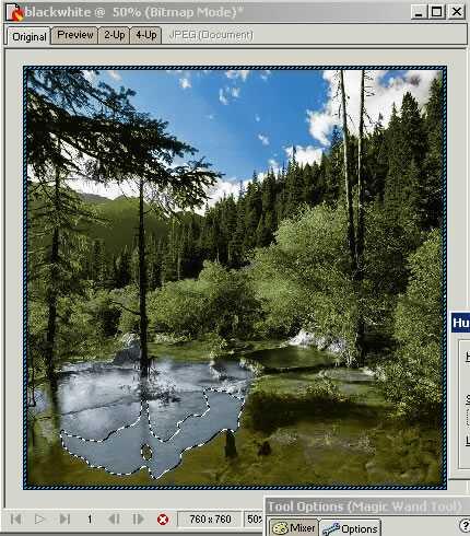 讓我們一起來感受一下Firework的強大功能吧! 打開一張黑白圖如下,然後用魔術棒工具做選區,