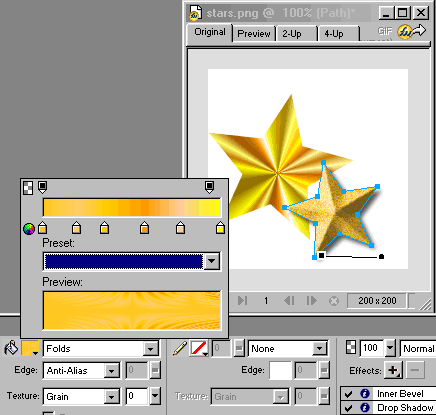 這次采用折疊(Folds)填色,本例的填色依次是:#FFC820,#FFCCC66,#FFCC00,#FF9900,#FFCC99,#FFFF00.選中五角星,就會看到填色槓桿。