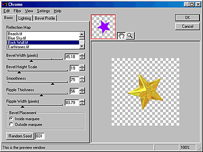這次要借助支持 Fireworks 的著名************濾鏡 Eye Candy 4000.一樣從屬性欄右方添加效果(Effects:+),調用的是鉻合金(Chrome)濾鏡,具體設置見下圖鉻合金濾鏡效果面版。
