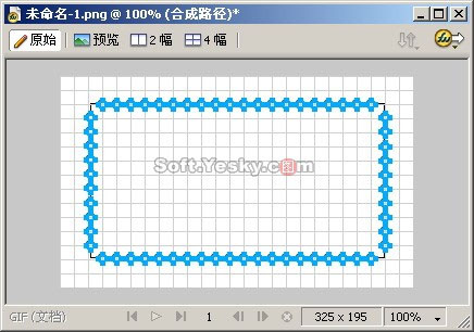 圖7 打孔後所得的路徑 7) 點擊工具箱上的矩形工具再繪制一個寬為245、高為115的矩形,設置該矩形的屬性如圖8所示,紋理為“網格線5”,並取消“顯示網格”。得到圖9所示的圖像。