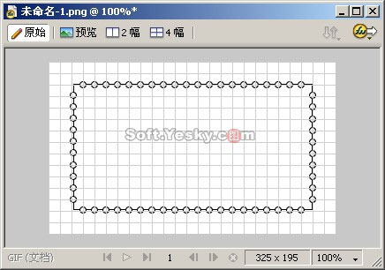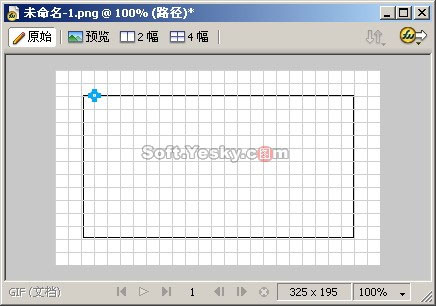 圖2 網格顯示在畫布中 2) 繪制一寬為271,高為142的矩形,設置其筆觸顏色為黑色,筆觸類型為1象素柔化,大小為1,得到圖3所示的圖像。