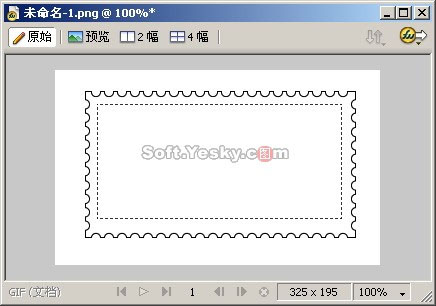 6) 在層面板中同時選擇合成路徑和矩形路徑,點擊 “修改”菜單,在下拉菜單中選擇“組合路徑-打孔”,得到如圖7所示的“郵票”的鋸齒邊緣。