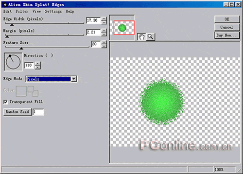 選中Transparent Fill復選框時,將以透明色對邊緣進行填充,此時的Color項也將不可用。