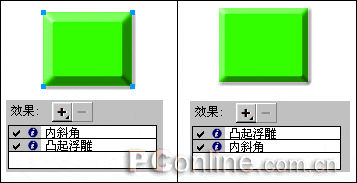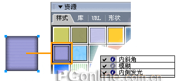 我們試著把一個圖形對象選中後在“樣式”面板中隨意為它添加一種樣式。這時我們在對象屬性框的效果欄中可以發現,這裡被自動添加了一些特效。如圖34。