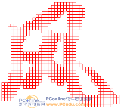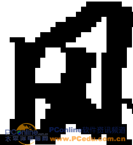 11、此刻編輯區的“文字"區域應該處於選中狀態,在選擇區域內單擊鼠標,即可完成對選區的圖案填充了,按快捷鍵“Ctrl+D"取消選區,編輯區的像素化文字效果已經出現了。