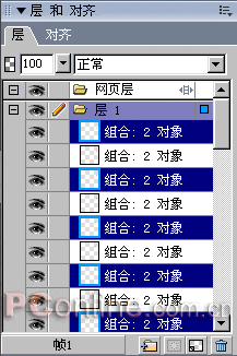 圖14 啟動“層”面板,從中可以吹劍忻白楹希?對象”的對象層都對應著一個扇頁,我們在按住Shift鍵不放的情況下,交錯著對這些扇頁進行逐一選取,如圖15。