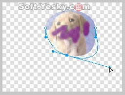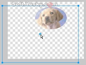 然後同時選中選中兩個對象(按Ctrl+A鍵),使用菜單欄上的“修改—蒙版—組合為蒙版”命令,兩個對象就被組合為蒙版圖形了。用鼠標拖動蒙版圖形的藍色中心點即可移動下層的被蒙版對象(小狗圖),效果如圖4—18。