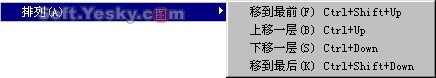 同一層的不同對象在工作區上是有上下的排列順序的,對於對象的上下排列順序可使用菜單欄中“修改—排列”下的命令進行調整,如圖3—30所示。