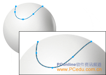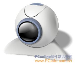 現實中的攝像頭多由兩三個塑料外殼拼裝而成,所以在拼裝的交接處就難免有些小裂縫。下面我們就來繪制這些小裂縫。先用“鋼筆”工具畫出攝像頭上的一條裂縫路徑,如圖04。