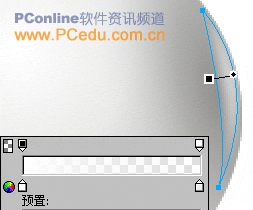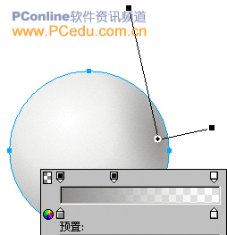 為了使攝像頭上的這個球形更有立體感,我們用“鋼筆”工具在該圓形的右側畫出球形的反光區域,然後在“屬性”框中對該路徑采用無筆觸描邊的“線性”漸變填充,填充手柄的設置如圖03所示,而“線性”漸變中左右兩個色彩滑塊的數值分別為:#FFFFFF、#EDEDEC。色彩滑塊上左右兩個不透明度滑塊的百分比分別為:100%和0%。