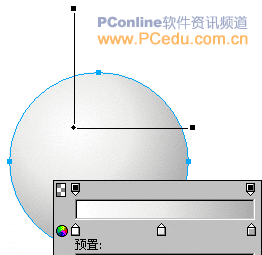 將該圓形對象進行復制,然後改變復制對象的填充手柄,使填充色的中心向右側偏移,效果如圖02所示。然後在“屬性”面板的填充色預選框中為其設置兩個漸變滑塊,色值分別為:# 8E8D8A、# EDEDEF,而色彩滑塊上的三個不透明度滑塊的百分比從左至右則依次為:100%、93%、0%。