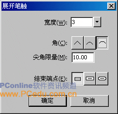 回到畫布區中,點選原裂縫路徑後,通過菜單“修改——改變路徑——擴展筆觸”命令,打開“展開筆觸”設置窗口,在“寬度”輸入框中設置該路徑的擴展數值為3,其它設置如圖06所示。