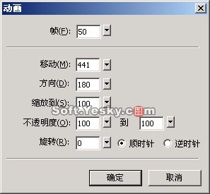 9) 為矩形添加動畫效果,動畫的參數設置如圖6所示,如果彈出警告框詢問用戶是否添加新的幀,只要選擇“確定’即可。