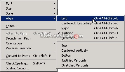 通過選擇“Text>>Align”菜單中適當的選項,可按路徑排列調整文本的對齊方式,如圖11所示。