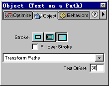 (1)在影格2,選中畫布中的文字路徑,然後選擇Object(對象)面板,在Text Offset(文字偏移)中填入數值,例如30。