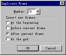 說明:復制的影格數目會影響動畫的連續性和生成的動畫文件大小,所以比較凌波微步比較合適的數目是10到20。對話框中,滑塊最大只可以拖動到10,但可以直接在文本框中輸入超過10的數。
