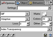 2.在優化(Opitimize)面板,選擇文件格式GIF,(如果制作透明動畫,則選擇Animate GIF).