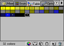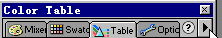 3.選擇色板(Color Table)面板,點擊面板右上角小箭頭,在彈出菜單中,選擇Rebuild Color Table(重建色板)命令.此時,色板表格中將對應的顯示當前圖像所使用的所有色塊.