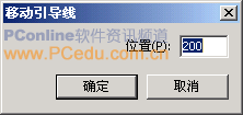 6、分別從上側標尺和左側標尺出拖拽出水平和垂直方向的兩條輔助線,使兩條輔助線相交於圓心。如果不確定是否相交於圓心,可以分別雙擊任意一條輔助線,在彈出的“移動引導線”的設置框中將“位置”均設為200,這樣配合第2步對圓形對象的大小、位置的數值設定,確。兩條輔助線相交於圓心處。