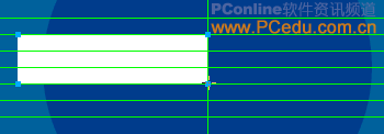 8、在編輯區繪制一個矩形對象,使其左邊在圓形對象的左側,右邊與垂直方向的輔助線重合,上邊和水平方向的第2條輔助線重合,下邊和水平方向的第5條輔助線重合,填充顏色為白色,無描邊色,如下圖所示。