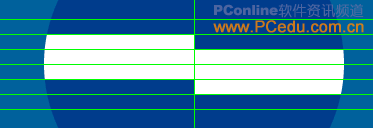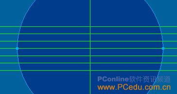 [注]觀察“百事可樂”的圖標可以發現,位於圖標中間位置的白色波浪圖形,並非是高度均一的,而是波峰和波谷的位置白色波浪的高度最高,位於兩側的起點和終點高度最低,這樣,接下來我們就先在編輯區拖拽出相關的輔助線,以備接下來的白色波浪圖形的繪制工作。